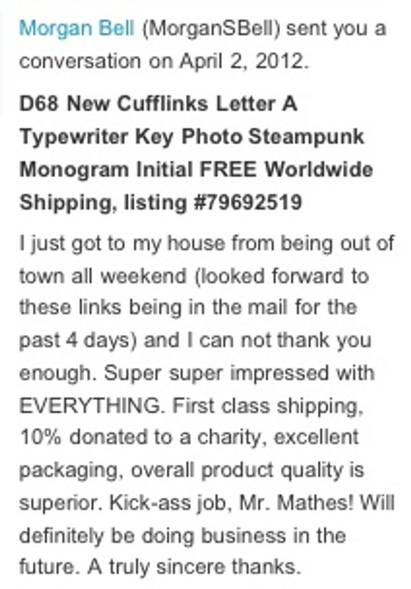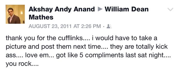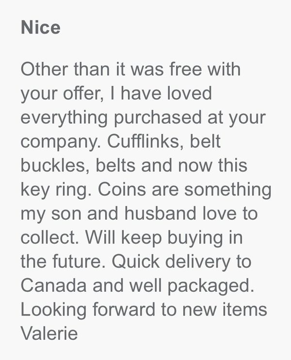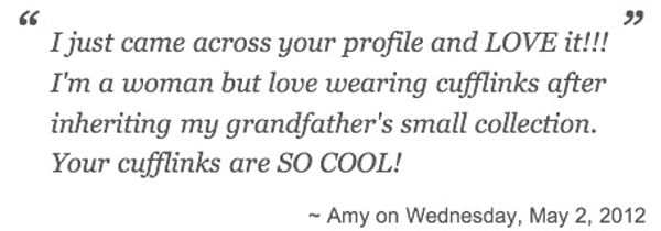 Hand-picked and handmade accessories such as neckties, tie tacks, cufflinks, rings, money clips, key chains, and belt buckles.